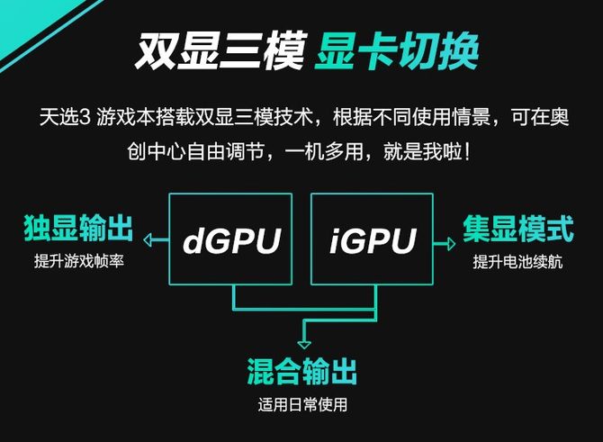 产品配置方面,天选3游戏本全线升级到最新的12代英特尔酷睿处理器,可选RTX 3070/3060满功耗显卡,值得一提的是,天选3游戏本全系支持“双显三模”显卡切换,玩家可开启独显输出模式进一步释放GPU性能,配合天选3游戏本搭载的16GB DDR5 4800 MHz内存与512GB PCIe 4.0固态硬盘,可轻松畅玩2022年度主流3A游戏大作。