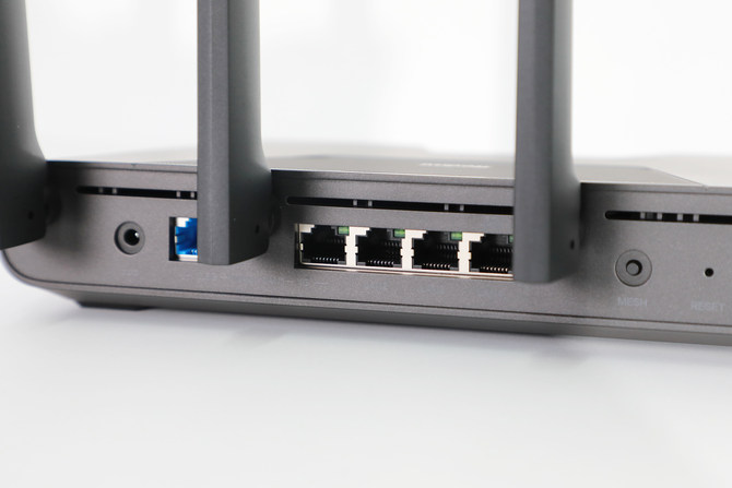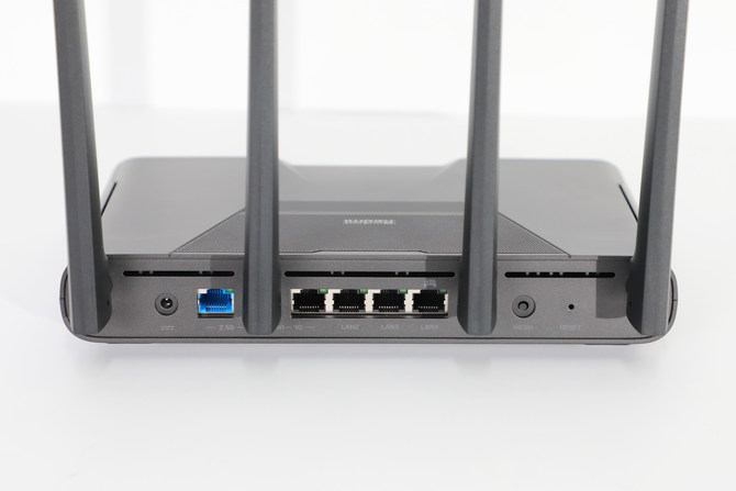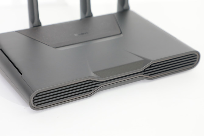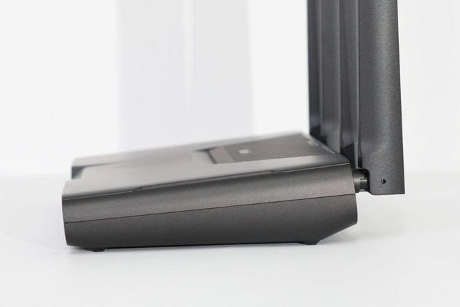 此前,Redmi的路由产品都是以实用性为主,其实并没有在设计上下过多功夫,这次 AX5400 即然定位电竞,设计上当然也是要有电竞相关的元素。整个路由通体采用经典的灰黑配色,做工非常细致,外壳硬度也很高。至于颜值方面,方正的主体和边缘圆滑的过度相搭配,有着很鲜明的个性,此外,虽说这是一款电竞路由器,但它并不显得很抢眼,相反是有着内敛且具有秩序感。